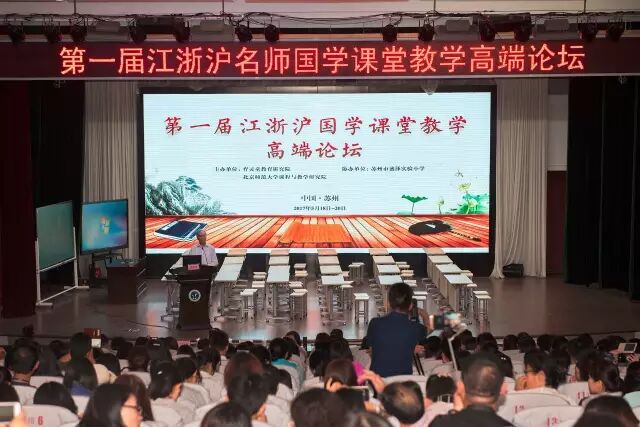 5月19日上午,第一届江浙沪名师国学课堂教学高端论坛在苏州市盛泽实验小学隆重召开。本次论坛由北京育灵童教育研究院、北京师范大学课程与教学研究院主办,苏州市盛泽实验小学协办,主要分为课堂展示、专家报告和名师论坛三个部分。会议旨在全面贯彻落实党中央的文化强国战略以及教育部关于加强学校文化建设的文件精神,大力推动教育改革,鼓励教育创新,帮助广大中小学厘清思路、把握重点,从而更好地开展中华优秀传统文化教育与学校文化建设工作。在为期两天的论坛中,来自全国各地的六百余位教育界专家、教育主管部门领导、校长及骨干教师代表汇聚一堂,围绕相关议题展开了内容丰富、形式多样的专题研讨。